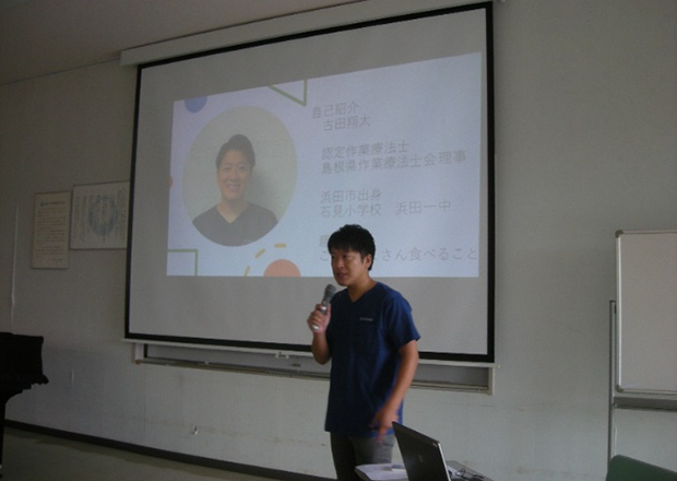 浜田市出前講座では、リハビリテーション島根の作業療法士 古谷 翔太様が、骨折転倒予防についての講演をされました。
