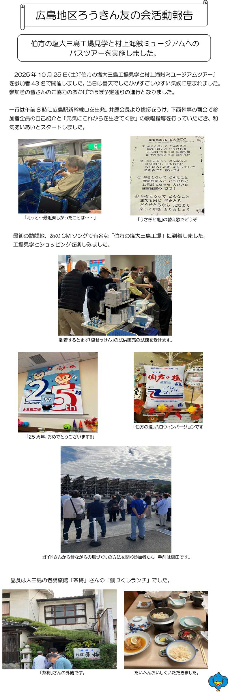伯方の塩大三島工場見学と村上海賊ミュージアムへのバスツアーを実施しました。