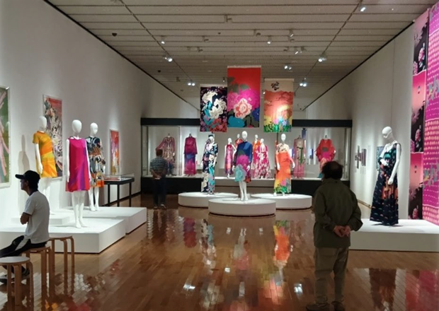 次にバスは、2つ目の見学場所である「島根県立石見美術館(グラントワ)」に向かう。まず目に入ってきたのが、屋根のみならず外観・内観の壁が全てに赤色に特徴のある地元の石州瓦が使われていることだった。2005年10月8日開館の美術館と劇場との複合施設であり大変立派な建物だった。開館より約20年間で650万人の入館者達成と表示されていた。現在館内では、島根県吉賀町(旧六日市町)出身の世界的ファッションデザイナーである森英恵さんの「生誕100年森英恵 ヴァイタル・タイプ」と題した特別企画展が開催されていた。会場には多くの煌びやかな服が展示されていた。中でも、現皇后雅子様の結婚パレード際のドレスやバルセロナオリンピック選手団の制服が、森英恵作だったことを初めて知った。多くの作品のデザインの原点は、島根の原風景にあるとパネルに書いてあった。世界に羽ばたく人も、最後の心の拠り所は、生まれた場所になるのだなと感じた。