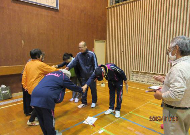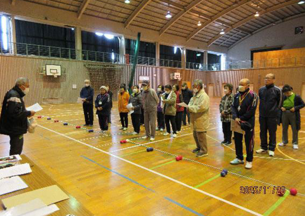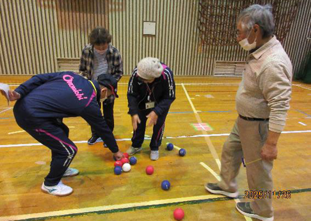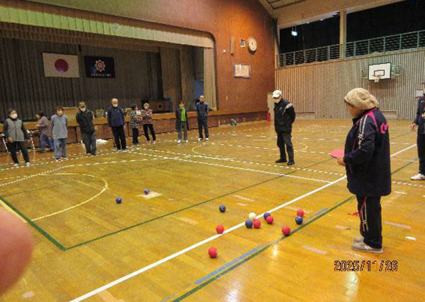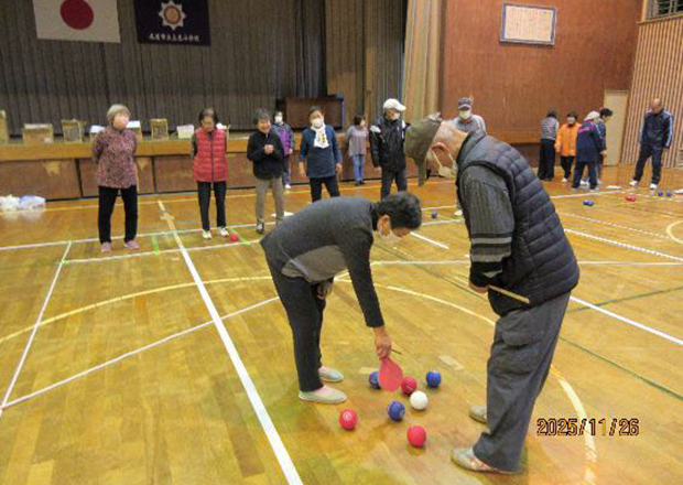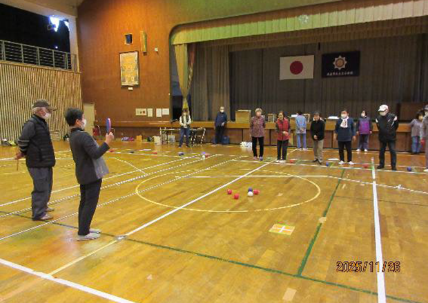 2025年11月26日(水)土生公民館の体育館にて、ボッチャ体験会を開催しました。6月の総会や11月の秋の旅行の参加者に「ボッチャ体験会」の募集をし、27名の参加希望者が有りました。参加希望者に開催案内を送付しました。