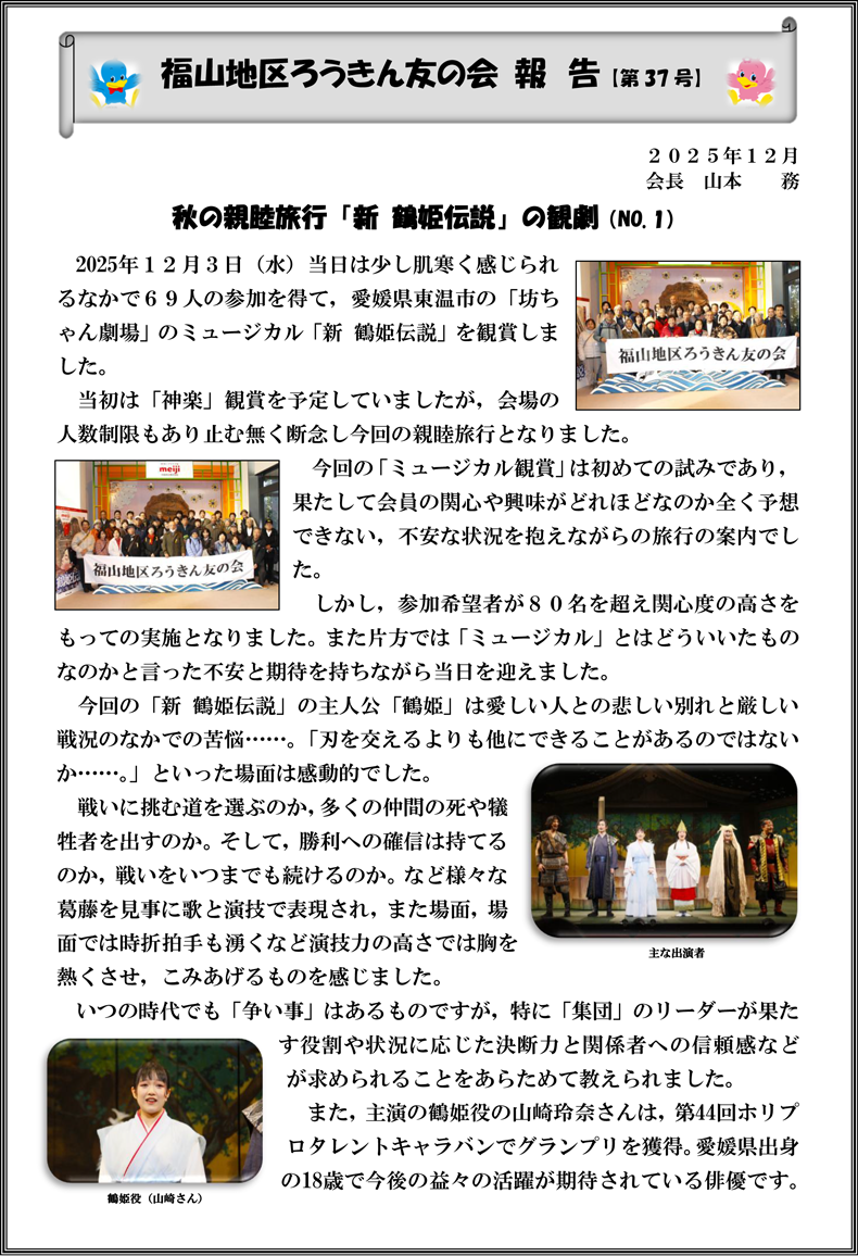 秋の親睦旅行「新 鶴姫伝説」の観劇(No.1)