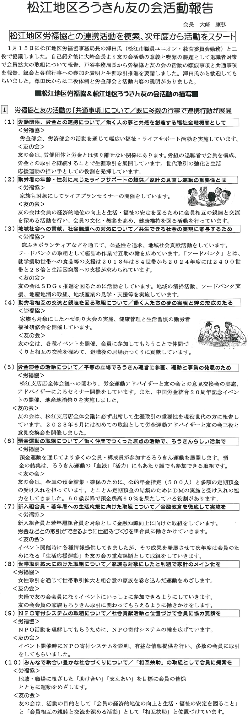 松江地区労福協との連携活動を模索、次年度から活動スタート